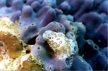 Sulawesi we have frequently found it on what appears to be the same sponge as shown in your photo on the Forum which we believe to be a species in the Order Haplosclerida.). We have also found it laying its eggs on the same sponge. On one occasion I found J. funebris on a large ascidian, Polycarpa aurata, but was unable to check if it was feeding or not as we were in the middle of hunting for a 'smoking' barrel sponge as well as checking the abundance of another sponge surveyed earlier in the day - very frustrating! Do you know if J. funebris feeds on large tunicates or is it exclusively a sponge feeder?