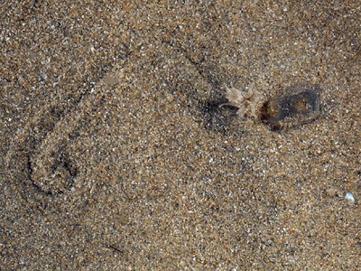 On being placed on sand in an aquarium the specimen immediately buried itself up to the level of the pallial processes and proceeded to plough through the sand at a reasonable pace. The second image is a lab shot of the partially buried specimen in motion.