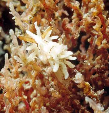 Locality: The Wall, Halifax Sponge Gardens, Marine Reserve Port Stephens, 10 metres, New South Wales, Australia, Pacific Ocean, 29 December 2000, Sand and rock wall covered in sponges, ascidians, hydroids and bryozoans. Length: 3 mm. Photographer: Leanne & David Atkinson.