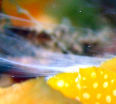 Your photo show the stringy viscous nature of the secretions phyllidiids exude when alarmed. Have a look a comment I made in response to a question about keeping phyllidiids in aquaria [message # 433].