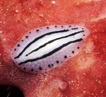 4-10 m depth, Phi Phi Island, southern Thailand, 25 Nov. 1989, dorsal view of 10 mm specimen on food sponge, Gellius sp. (Brunckhorst, 1993: Plate 8F).