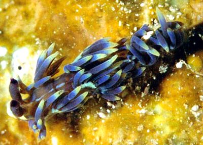 Regarding your forum discussion about the forms of Pteraeolidia ianthina, here are a couple of blue forms I photographed in Hawaii.