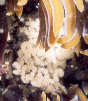 They are quite often found on the greyish soft-coral, Parerythropodium which forms a leathery layer over sublittoral rocks. Adult Pteraeolidia feed on the large solitary hydroid Ralpharia which is found embedded in the soft-coral colonies. There is a photo of the hydroid at the Top of the Page.