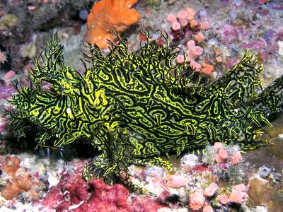Thanks for this. It is surprising how many nudibranchs seem to walk over scorpion fish. [The close-up alongside is of the fish's 'beard']. I know there are a few other examples on the Forum, one in fact showing a scorpion fish with nudibranch eggs deposited on its back [#12726 ]. And before anyone suggests that the remarkable colour similarity is a superb example of camouflage or mimicry, I think it is just a remarkable coincidence. I guess scorpaeinid fish, which sit still for long periods, are just another rock to a nudibranch.
