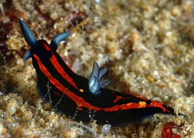 IN answer to your comments, I've seen three tiny Roboastra gracilis in the Similans (three separate locations) and they all had very red lines on the body. Unfortunately I had a camera with me on only one of those occasions.