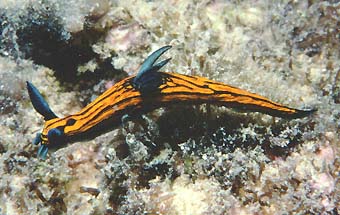 Here are images of a specimen of Roboastra gracilis photographed in the Red Sea at 'Black Mountain' dive site (about 550km south of Jeddah) on August 21 1992.