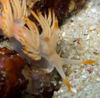 Here is a shot of Sakuraeolis nungunoides feeding on a hydoid.