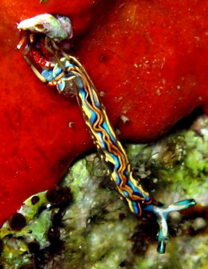 This colourful elysiid sacoglossan, Thuridilla hopei, is very variable in colour. By chance, the last message we received on this species, from Vasilis Athanasopoulos, was of a similarly coloured animal from Greece [#15307]. Best wishes,