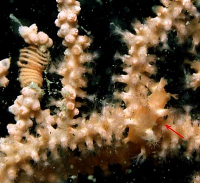 The gorgonian prey has been identified as Eunicella singularis. See message from Helmut Zibrowius - 24 Oct 2001.
